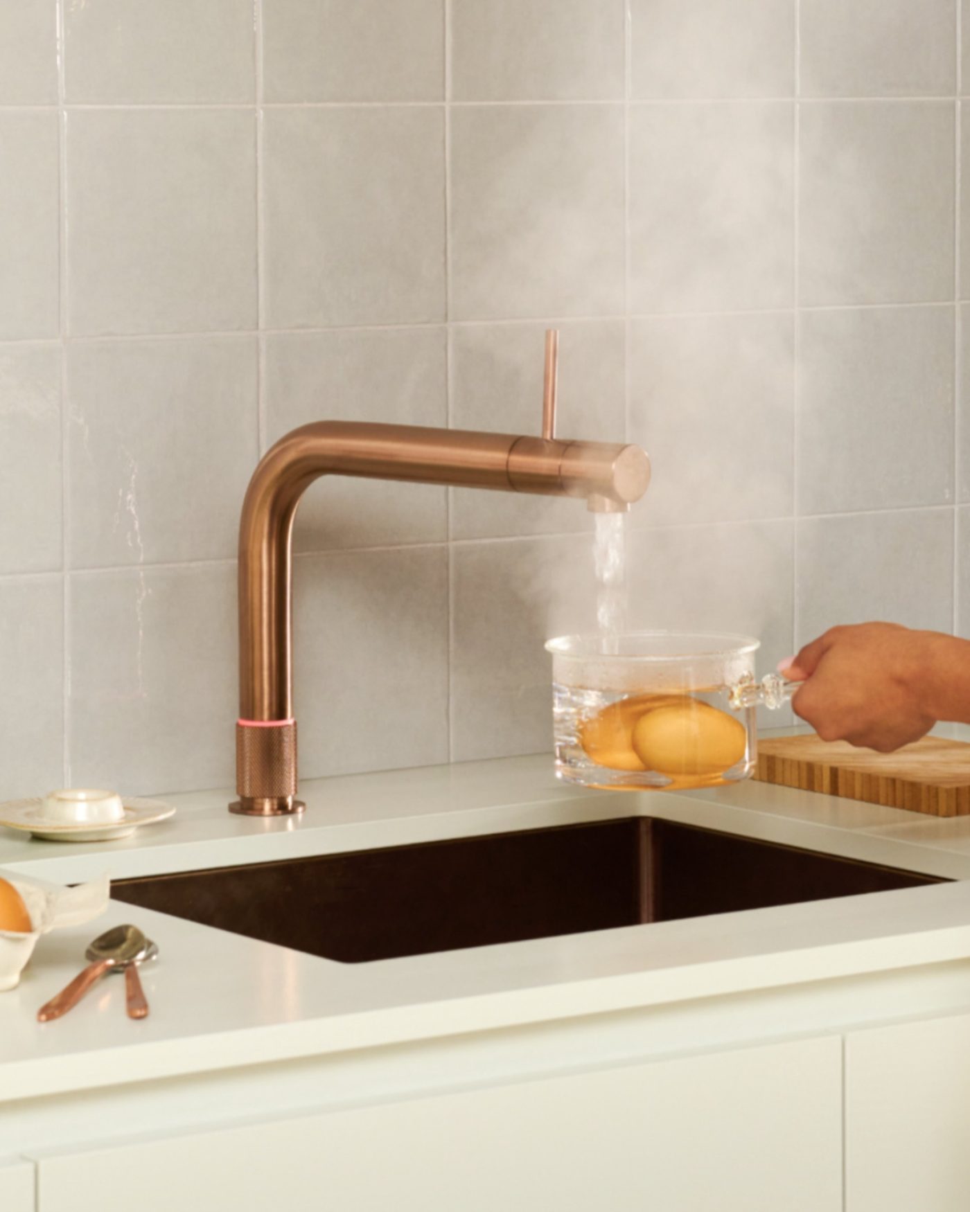 Dankzij de kindveilige bediening aan de voorkant tap je met één beweging kokend water, zonder concessies te doen aan design of veiligheid.